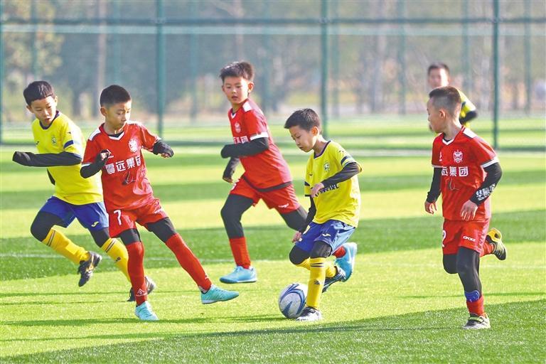 “与队友之间拉开距离,保持好阵型!”“接球前注意身后,不要着急!”……近日,陕西省第八届青少年足球俱乐部“联盟杯”锦标赛竞技组U12年龄段决赛现场,教练员在场边呐喊着。经过6个比赛日的激烈角逐,该项赛事在渭南市渭河生态运动公园足球场全面收官。来自全省各地的55支队伍800多名青少年球员驰骋在冬日的绿茵场,感受足球运动的魅力。