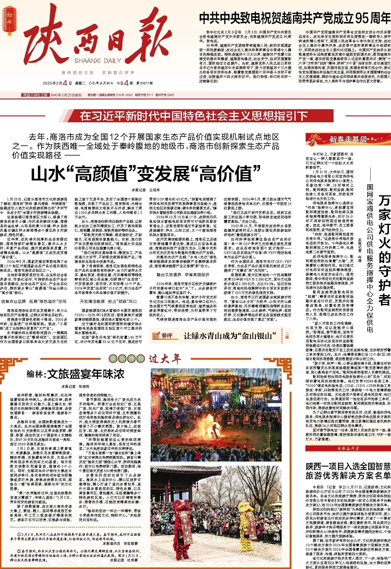 近年来,依托得天独厚的生态资源优势,商洛持续打造精品景区、建设山水乡村、丰富产品供给、提升旅游服务质量、打造精品线路。山水“高颜值”正在变成发展“高价值”。