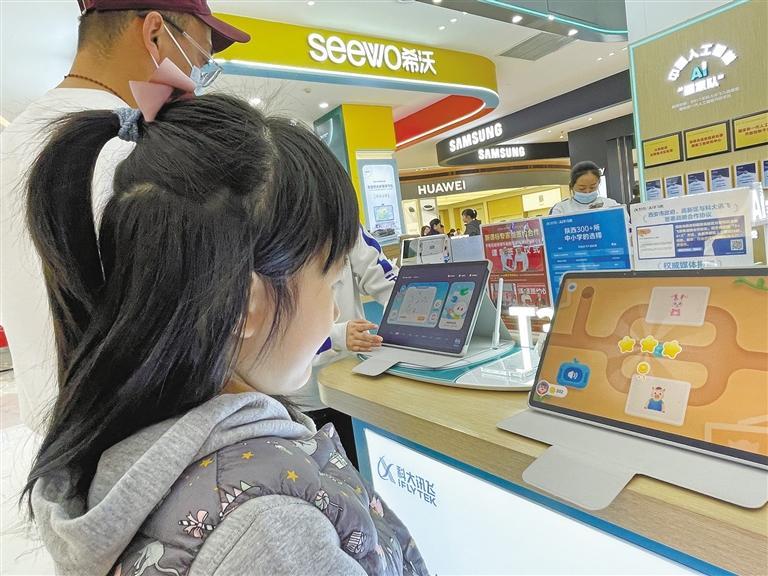2月7日,记者在西安赛格国际购物中心的学习机专柜看到,科大讯飞、学而思、希沃等品牌的学习机价格从2000多元到上万元不等,每个品牌的专柜前都围了不少前来试机的小朋友。