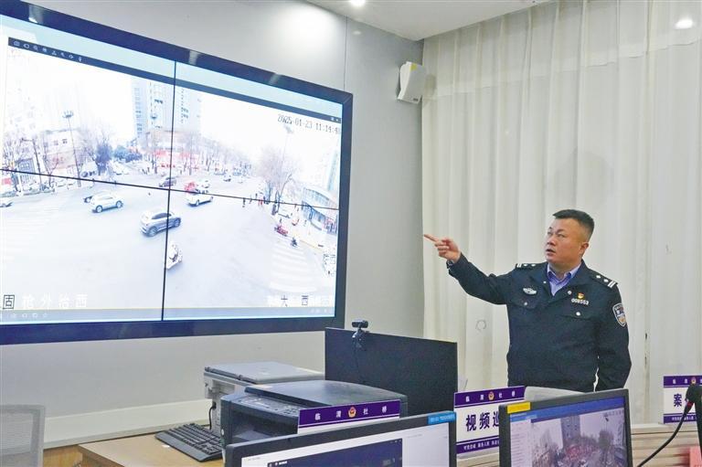 渭南市公安局临渭分局杜桥派出所所长樊晓聪在杜桥派出所综合指挥室介绍辖区治安情况(2月10日摄)。