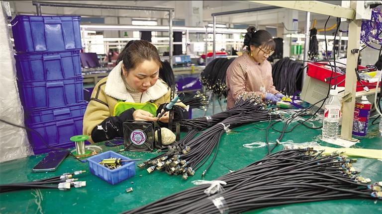 陕西省汉阴县格邦电子科技有限公司以加工生产电子线束为主,产品销往欧美国家。建厂之初,公司年产值仅200万元左右,2024年实现产值1200万元,为周边群众提供就业岗位60余个。