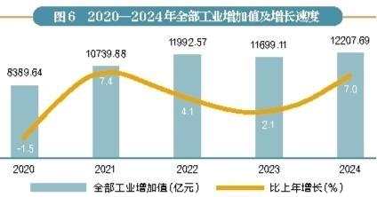 全年全省全部工业增加值12207.69亿元,比上年增长7.0%。规模以上工业增加值增长7.8%。在规模以上工业中,采矿业增加值比上年增长8.6%,制造业增长7.1%,电力、热力、燃气及水的生产和供应业增长6.7%。
