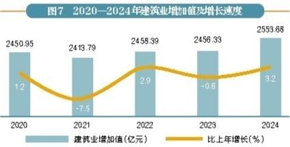 全年全社会建筑业增加值2553.68亿元,比上年增长3.2%。全省具有资质等级的总承包和专业承包建筑企业总产值比上年增长3.8%,其中,国有及国有控股企业总产值增长1.2%;签订合同额26029.12亿元,下降1.2%。