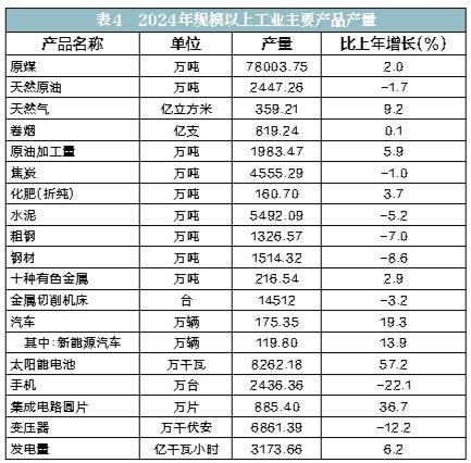 全年规模以上工业中,能源工业增加值比上年增长8.0%,其中,煤炭开采和洗选业增长10.1%,电力、热力生产和供应业增长5.9%,石油、煤炭及其他燃料加工业增长5.1%。非能源工业增加值比上年增长7.5%,其中,汽车制造业增长18.1%,铁路、船舶、航空航天和其他运输设备制造业增长6.6%,计算机、通信和其他电子设备制造业增长5.6%,医药制造业增长5.1%。装备制造业增长7.1%,高技术制造业增长5.3%。