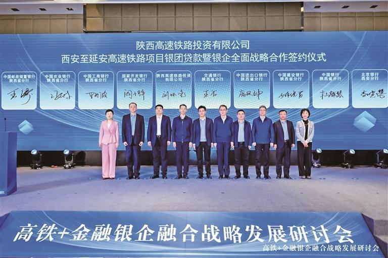 西安至延安高速铁路项目银团贷款暨银企全面战略合作签约仪式。