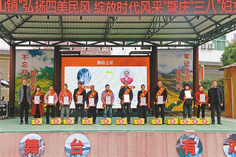 3月7日,岚皋县南宫山镇举办“弘扬四美民风 绽放时代风采”活动,为“四美之星”颁发荣誉证书(资料照片)。 受访单位供图