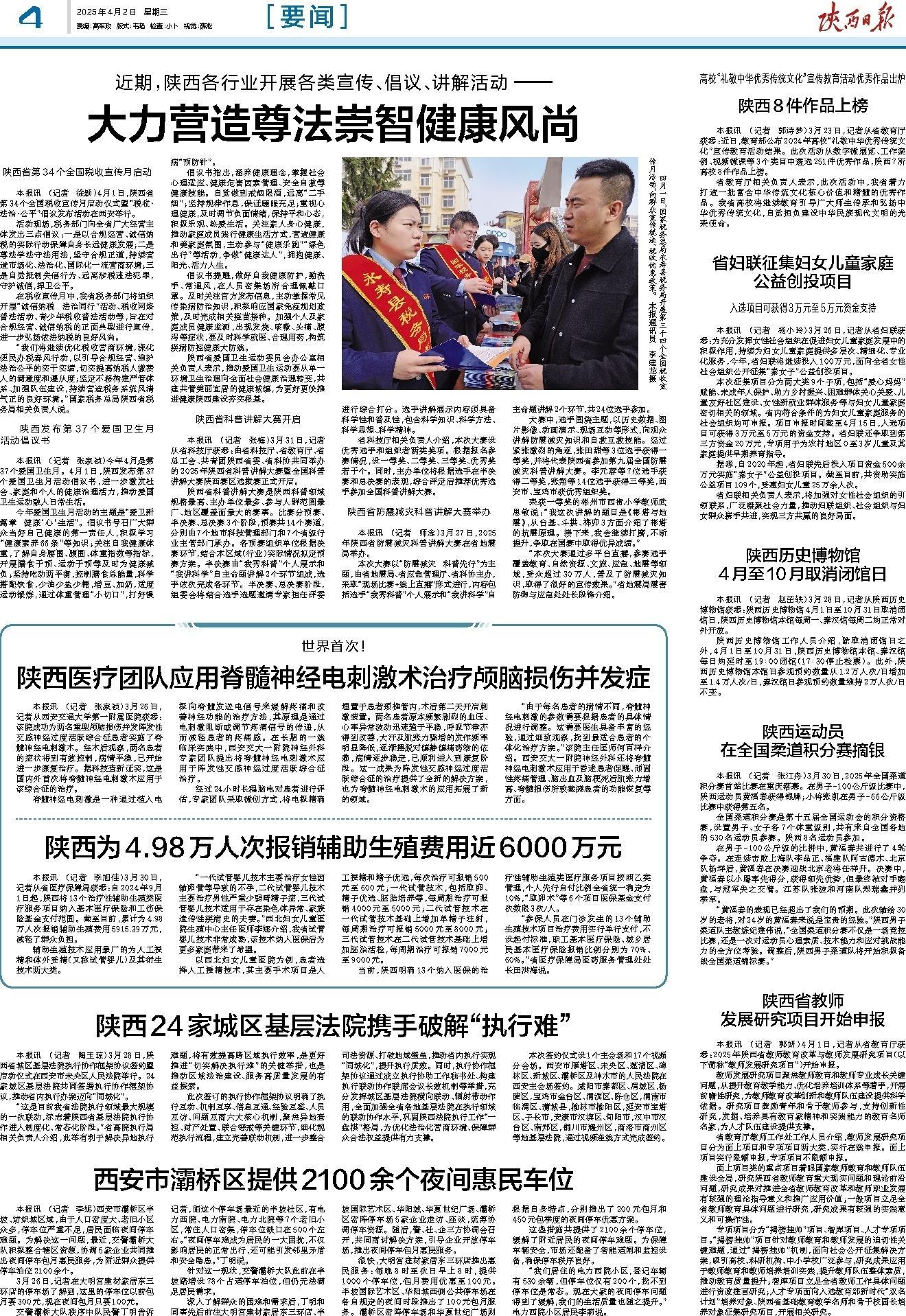 本报讯 (记者 李旭佳)3月30日,记者从省医疗保障局获悉:自2024年9月1日起,陕西将13个治疗性辅助生殖类医疗服务项目纳入基本医疗保险和工伤保险基金支付范围。截至目前,累计为4.98万人次报销辅助生殖费用5915.39万元,减轻了群众负担。