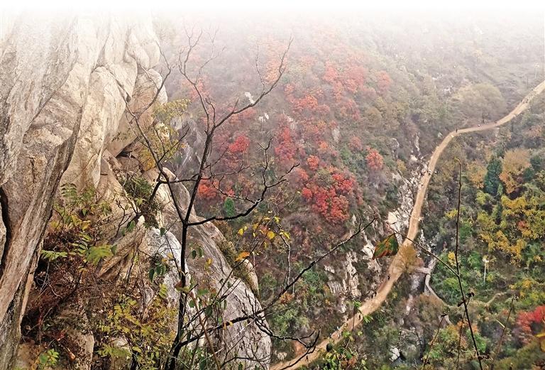 再前行,一道闸坝横在子午河上,是子午水库,水库中没有蓄水,河流自然流淌。半个小时,走到拐儿崖的时候,路侧开一口,可下河玩水。沿河行走,发现河边一条清晰的古道,仅容一人一狗前行。河水漫过人工开凿过的巨石,上有一条条不规整的石阶,古道与流水、森林融为一体,已难辨识。然而,村民或“驴友”仍在使用这些道路,人们的踩踏使古道一直用到今天。拐儿崖这一段,因杜甫一首诗的摩崖石刻而闻名。杜甫走到玄都坛时,顺道拜访一位道友,写了《玄都坛歌寄元逸人》。传说玄都坛是汉武帝祭天的地方,乃道教名胜,古时道观如云占领了这座山。后来,众道观衰落,仅剩一处玄都坛遗址。极目四望是山峦的海洋,红叶、绿叶、黄叶交错晕染得秦岭秋色盎然,果然“致身福地何萧爽”。同时望见山中土路纵横延伸,古道处处可联通,山峦重重可通达,这蜀道原不是一条路,而是秦岭山中的路网。