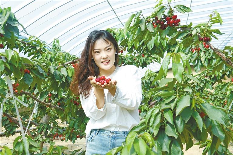 在黄土高原种出高品质樱桃,靠的是设施农业。近年来,朱官寨镇瞄准现代农业发展方向,将40座日光温室大棚中的10座用于樱桃种植,通过智能温控、精准湿度调节等科技手段,在年均降水量不足400毫米的黄土丘陵区,为樱桃打造出“专属”气候。
