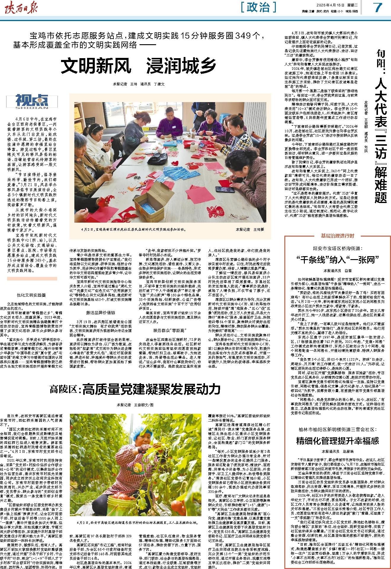社区是基层自治的基本单元。2024年以来,高陵区从基层党组织建设、街道管理效能、社区队伍建设、物业服务管理、精准化治理、精细化服务6方面细化57项任务,推动资源下沉、力量下沉、服务下沉。