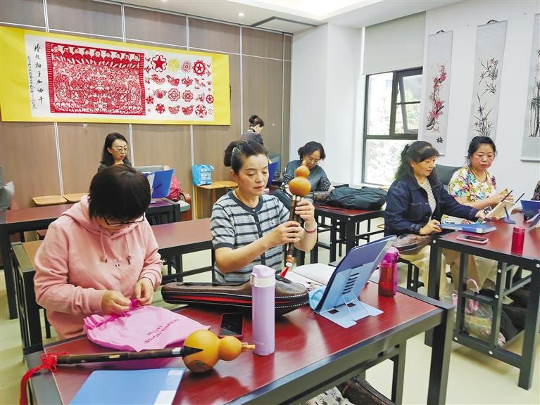 4月23日上午10时,在志愿者的组织下,西安市莲湖区红庙坡街道梨园社区的老年舞蹈队队员准时开始排练,托育课上孩子欢乐地蹦跳嬉戏,老年大学的学员认真学习剪纸……