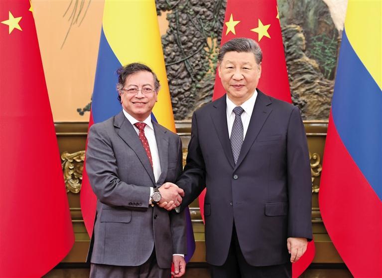 佩特罗表示,哥伦比亚与中国的友好关系源远流长,哥方期待深入发展对华关系。双方要深化政治互信,加强相互支持。共建“一带一路”,拓展贸易、基础设施、新能源、人工智能等领域合作,改善人民生活。当前,国际局势复杂多变,个别国家唯利是图的做法不利于世界,各国应团结应对。哥方愿同中方密切配合,捍卫国际公平正义,维护发展中国家共同利益。