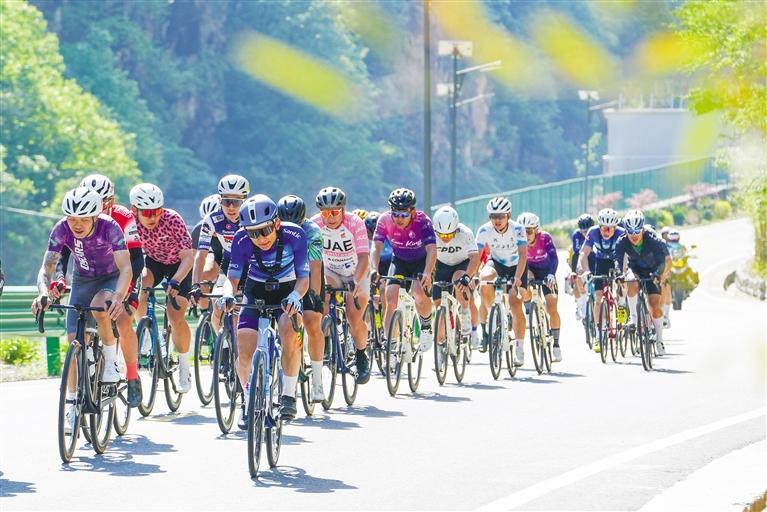 5月10日,来自省内外的骑行爱好者在2025环秦岭第九届自行车联赛(商洛柞水站)的赛道上奔驰。