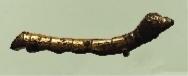 鎏金铜蚕长仅5.6厘米,全身完整、造型逼真,首尾共计9道腹节。蚕仰头,呈吐丝的体态。制作时,先用铜模铸型,然后在表面涂金。这个并不起眼的“小动物”历经2000年仍引人注目。