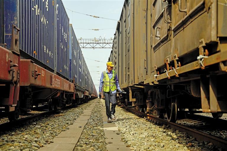 “我们一个班组有26名检车员,全班组平均每天要接送70列、3500辆货运列车。检车员日均步行3万多步、约20公里,相当于每天都要跑一个半程马拉松。”四班班组工长邓海涛说。