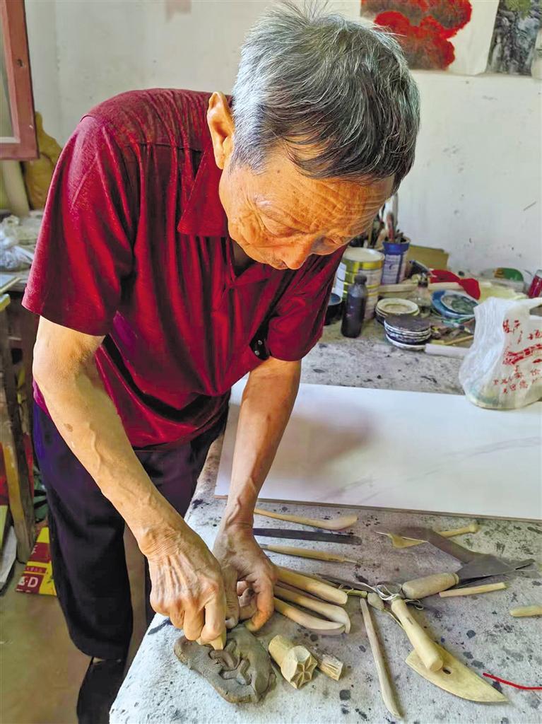 “我从小就喜欢看书、画画。师父制作的人物造像形象生动,和我想象中的人物形象一样,于是,我开始跟他学习做泥塑。”李昌吉说。