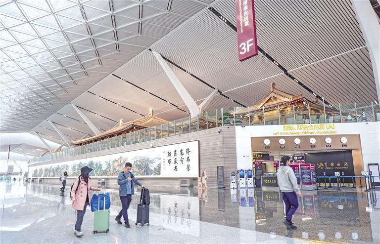 西安咸阳国际机场T5航站楼内国际、港澳台出发入口(资料照片)。 受访单位供图