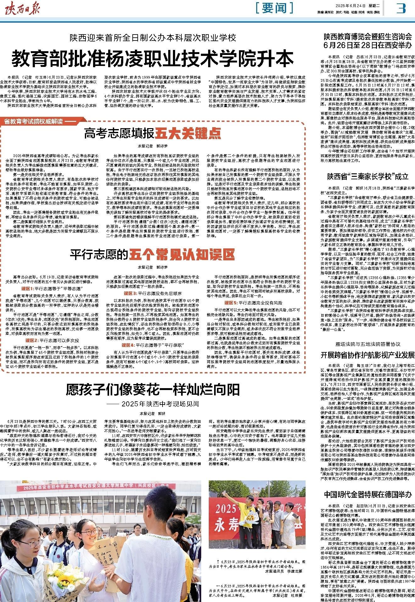 本报讯 (记者 付玉玮)6月23日,记者从陕西农林职业技术大学获悉:日前,教育部致函陕西省人民政府,批准以杨凌职业技术学院为基础设立陕西农林职业技术大学。