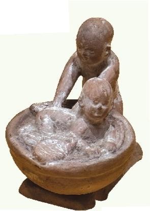 收藏于西安博物院的宋代彩绘沐浴童俑,1965年出土于西安市新城区,呈现出一幅生动活泼、妙趣横生的婴童沐浴图。