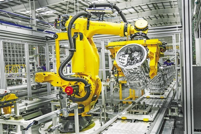 7月4日,在法士特高智新自动化生产线上,工业机器人有序组装企业最新研发制造的自动变速器。