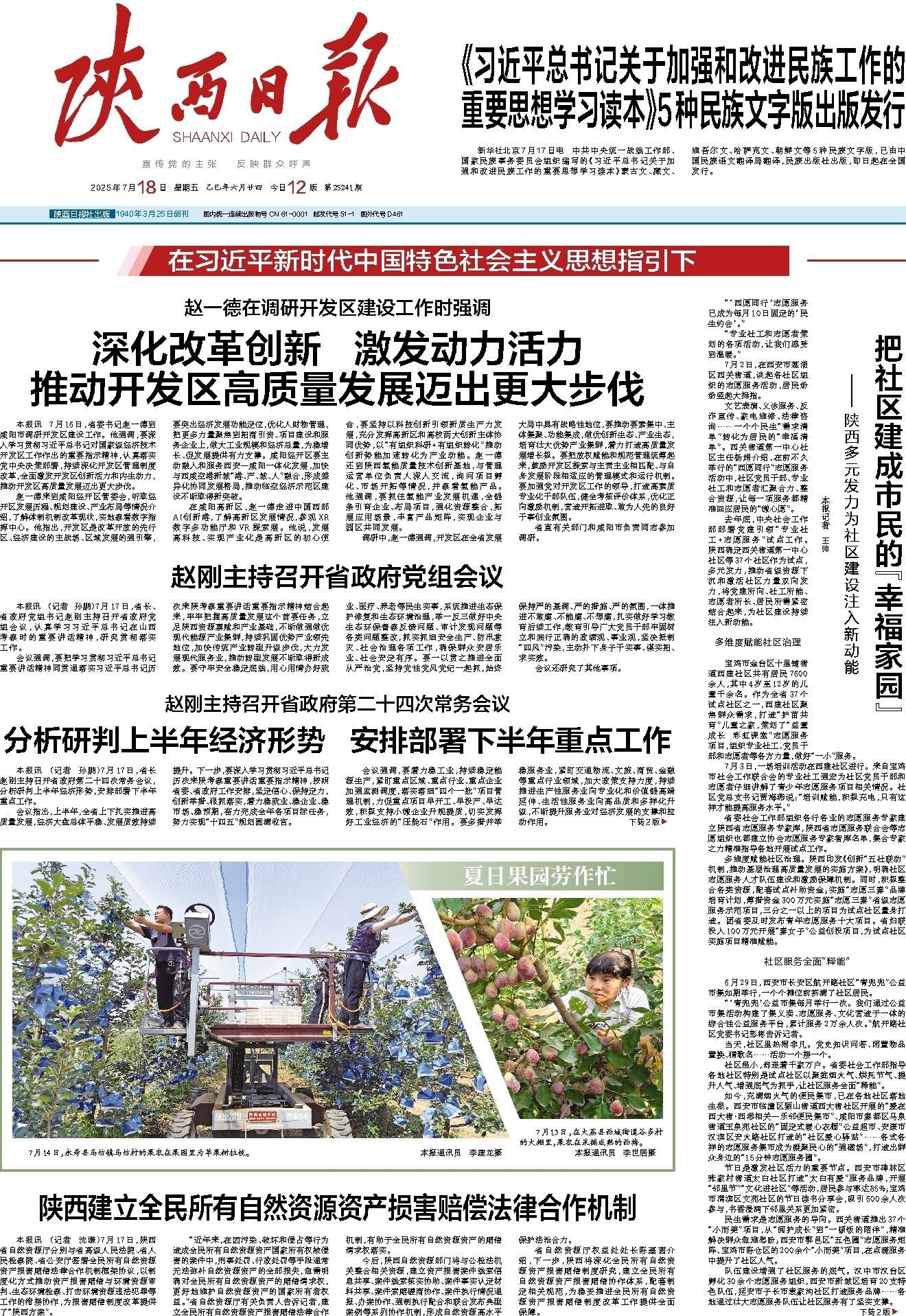 《陕西日报》 (2025年07月18日 第01版)