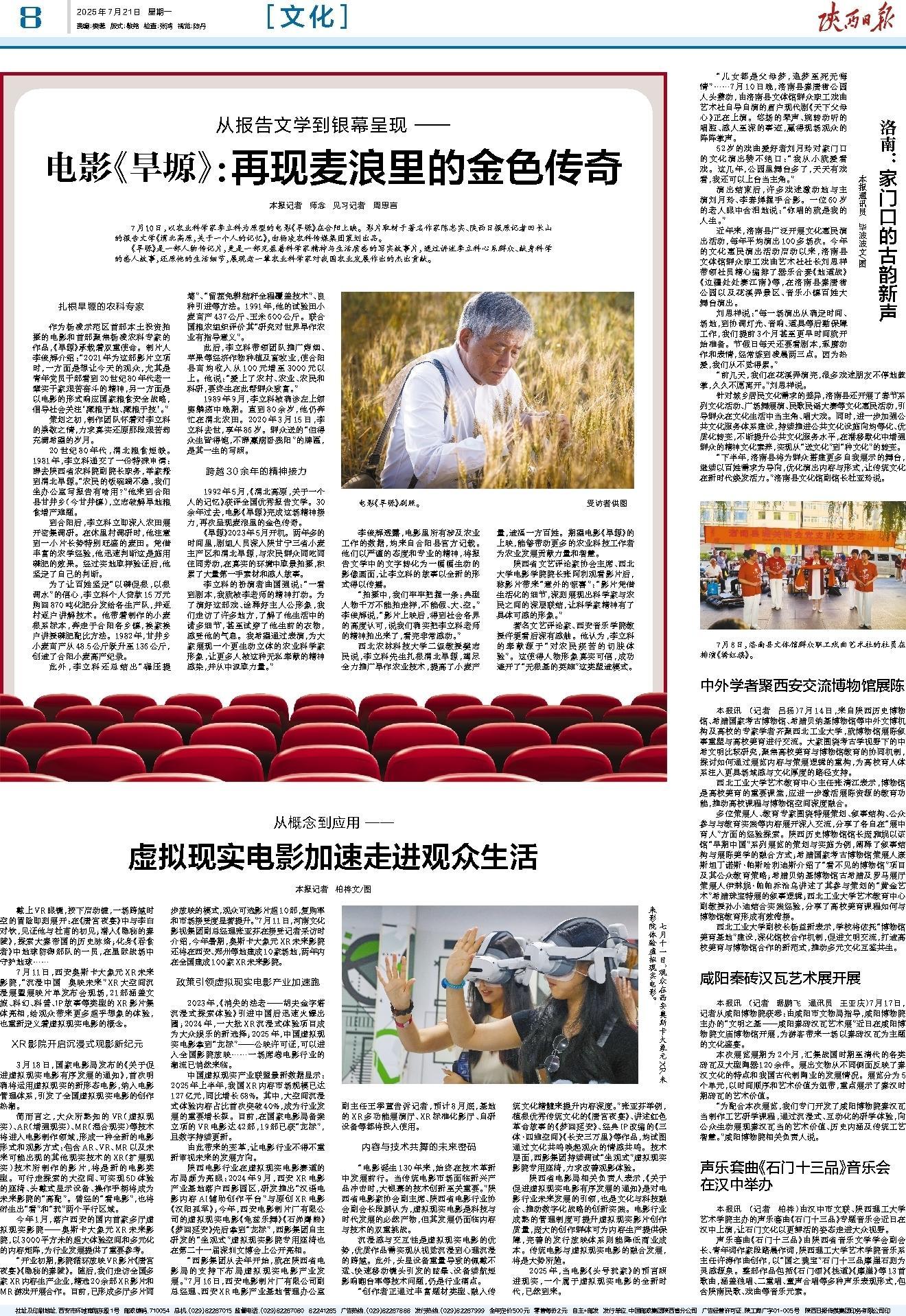 陕西电影行业在虚拟现实电影赛道的布局颇为亮眼:2024年9月,西安XR电影产业基地落户西影园区,研发推出“汉语电影内容AI辅助创作平台”与原创XR电影《汉阳孤军》;今年,西安电影制片厂有限公司的虚拟现实电影《龟兹乐舞》《石峁鹰熊》《梦回延安》先后拿到“龙标”,西影集团自主研发的“坐观式”虚拟现实影院专用座椅也在第二十一届深圳文博会上公开亮相。