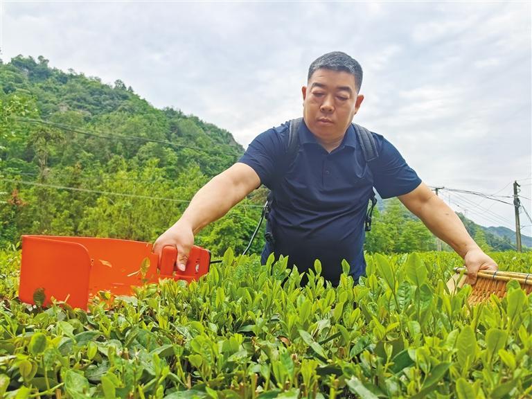 “有了这台采茶机,不仅采茶快了,人也轻松不少。”7月18日,汉阴县凤凰山茶业专业合作社的茶园里,务工群众张大斌说。
