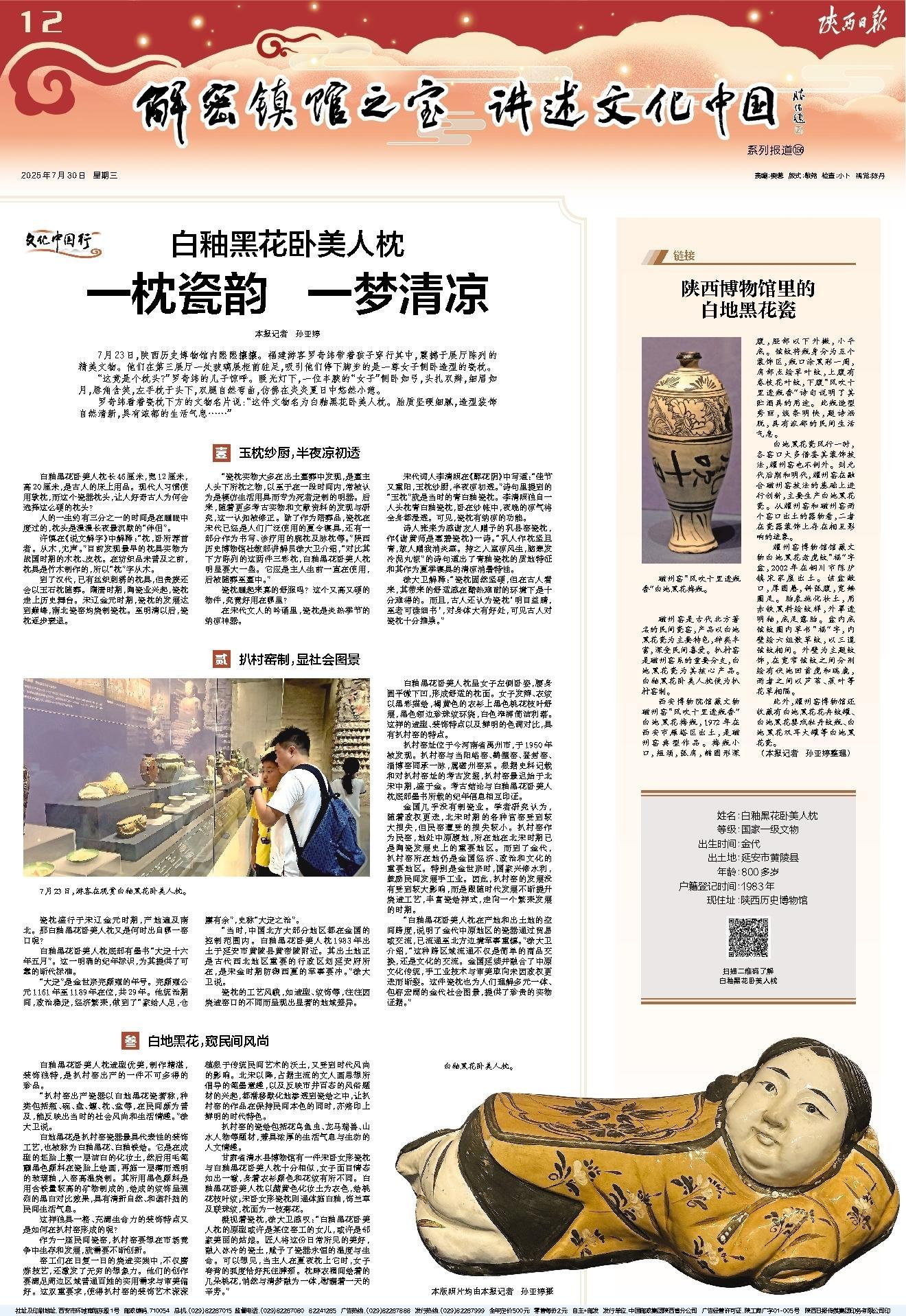 7月23日,游客在观赏白釉黑花卧美人枕。