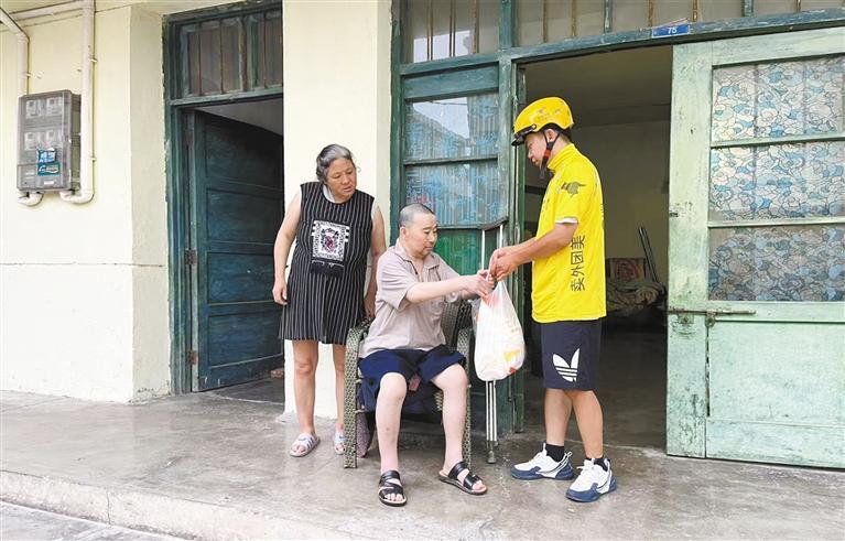 7月16日,宁强县外卖骑手袁亮看望大安镇大安社区困难群众(资料照片)。 受访者供图