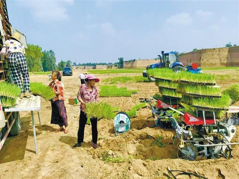 7月30日,在宝鸡市凤翔区长青镇,村民在栽植大葱。 本报记者 李静茹摄