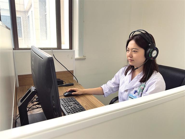 7月24日,“12356”心理援助热线咨询员在接听求助电话。