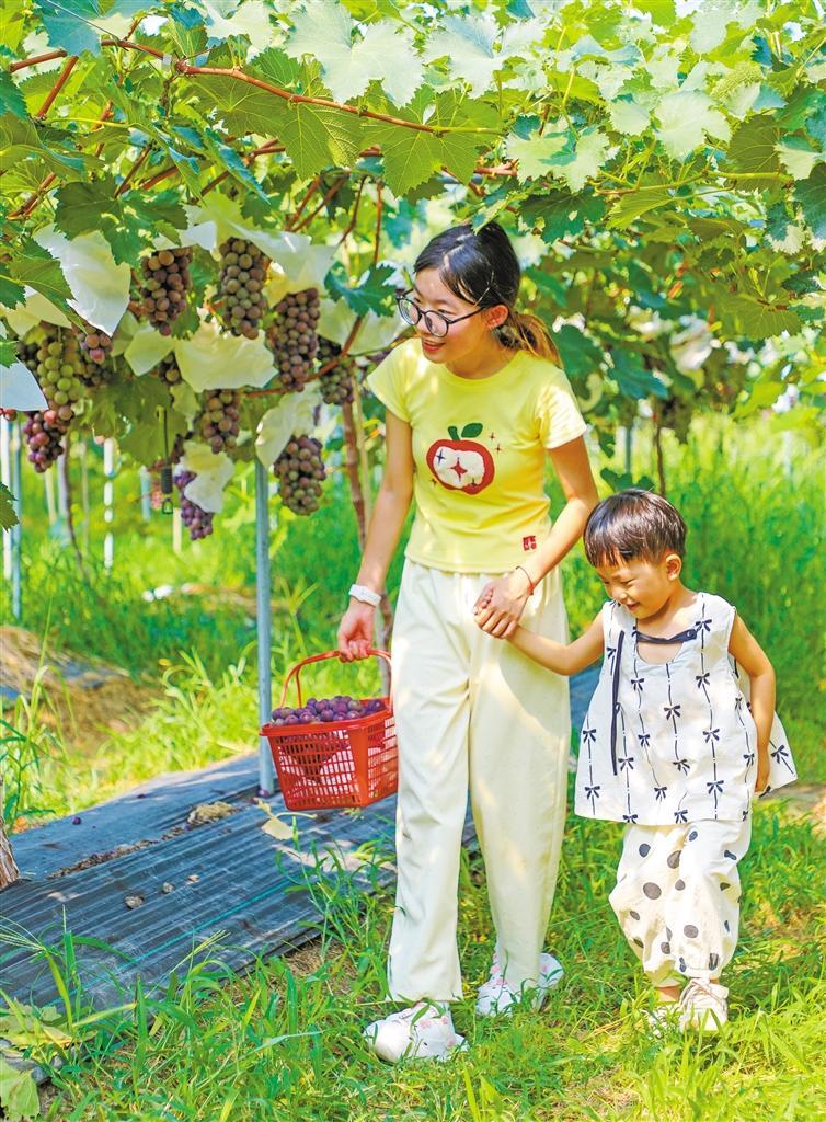 八月一日,游客在勉县周家山镇红光村甜颜蜜果葡萄种植基地采摘葡萄。 本报通讯员 陈林摄