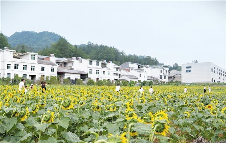 8月6日,游客在平利县广佛镇广佛村观赏油葵花海。去年以来,广佛村种植油葵百余亩,加快农文旅融合发展,助力乡村振兴。 本报通讯员 沈奕君摄