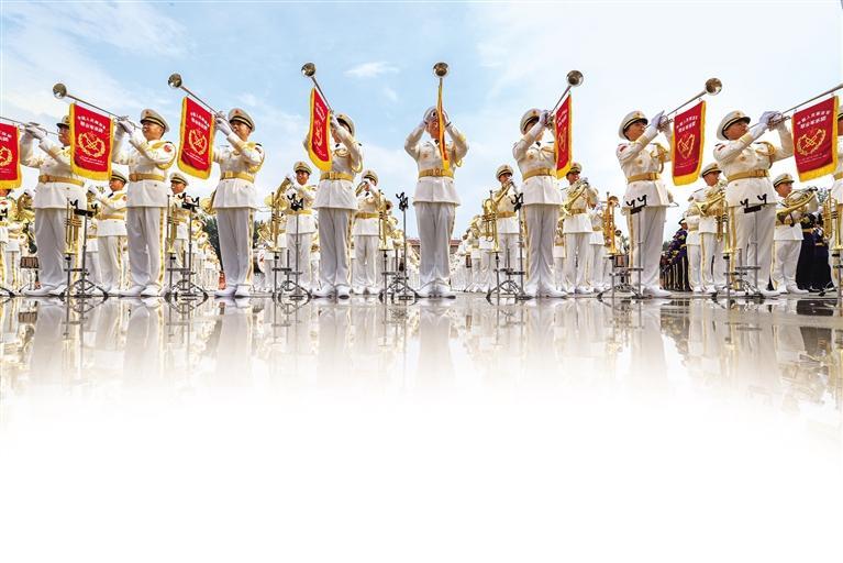 此外,这次阅兵,由解放军仪仗司礼大队军乐团和其他部队抽组成立联合军乐团,为纪念活动营造隆重庄严的氛围。徐贵忠介绍,在演奏曲目设计上,精心编排像《松花江上》《保卫黄河》等具有代表性的经典曲目,同时也专门创作富有时代特征的新曲目。在演奏队形编排上,整体设置14个排面,寓意14年抗战;前排设置80名礼号手,寓意抗战胜利80周年。