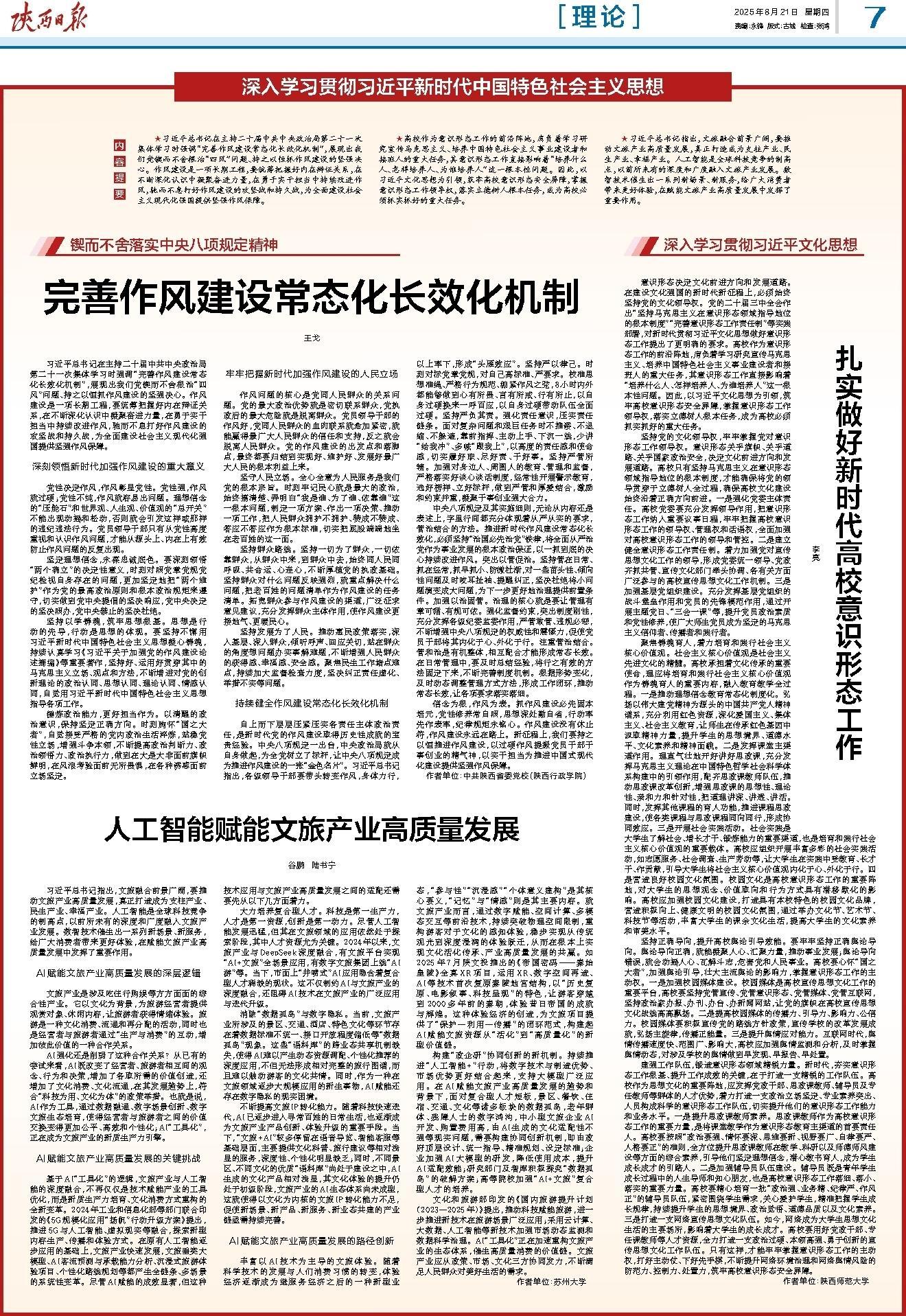 构建“政企研”协同创新的新机制。持续推进“人工智能+”行动,将数字技术与制造优势、市场优势更好结合起来,支持大模型广泛应用。在AI赋能文旅产业高质量发展的趋势和背景下,面对复合型人才短板,景区、餐饮、住宿、交通、文化等诸多板块的数据孤岛,老年群体、残障人士的数字鸿沟,中小型文旅企业AI开发、购置费用高,由AI生成的文化适配性不强等现实问题,需要构建协同创新机制,即由政府顶层设计、统一指导、精准规划、设定标准;企业加强AI大模型的研发,降低使用成本,提升AI适配效能;研究部门及智库积极探究“数据孤岛”的破解方案;高等院校加强“AI+文旅”复合型人才的培养。