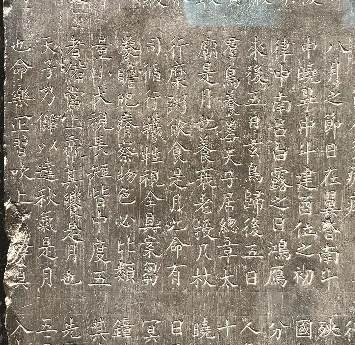《开成石经》上刊刻的《礼记·月令》中关于白露节气的记载(9月2日摄)。 本报记者 孙亚婷摄