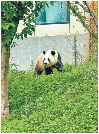 9月9日,秦岭大熊猫佛坪救护繁育研究基地,大熊猫“党生”在玩耍。