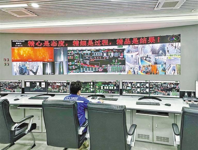 8月20日,在中节能(商洛)环保能源有限公司,工作人员实时观察生活垃圾无害化焚烧情况(资料照片)。