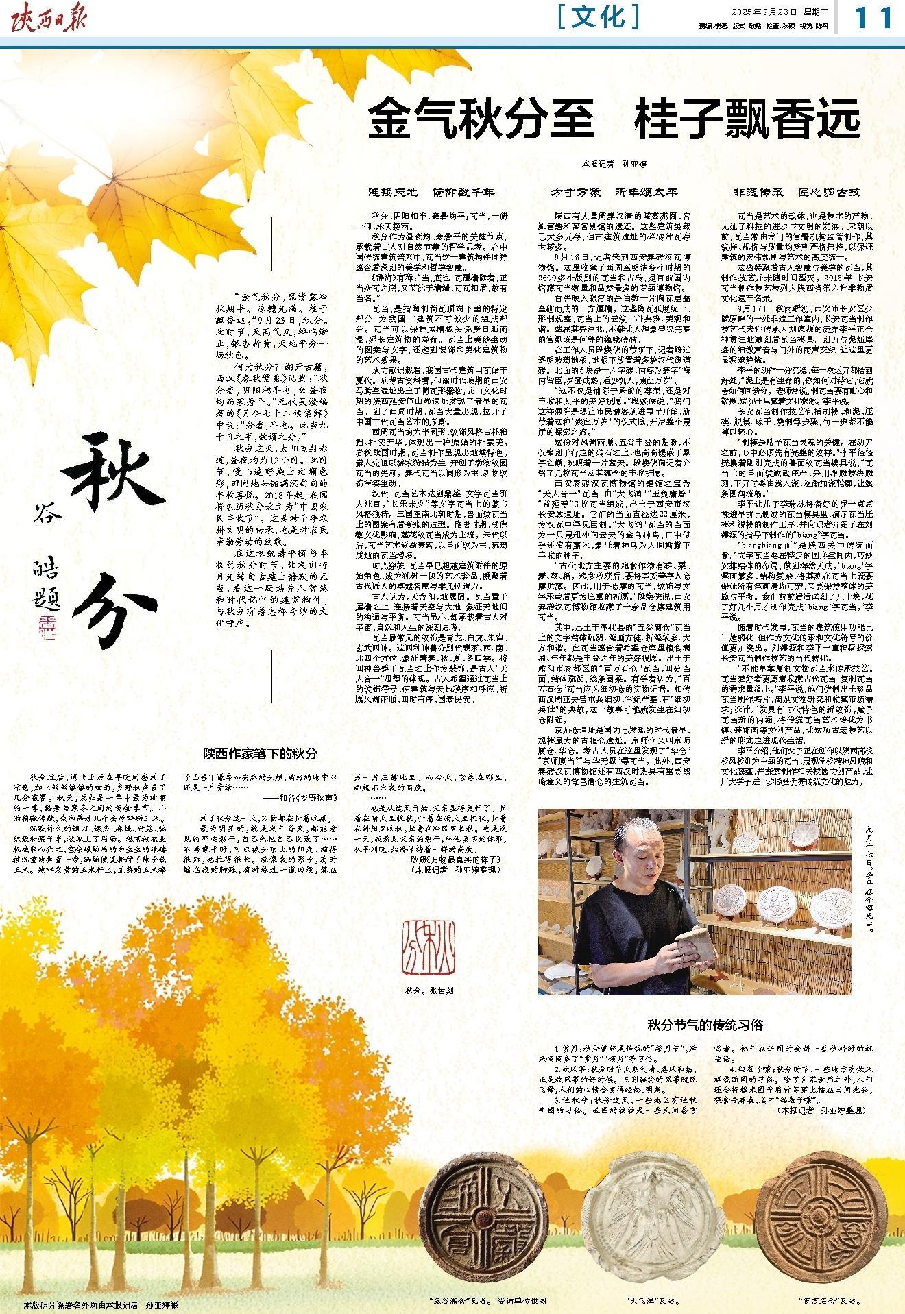 秋分,阴阳相半,寒暑均平;瓦当,一俯一仰,承天接雨。