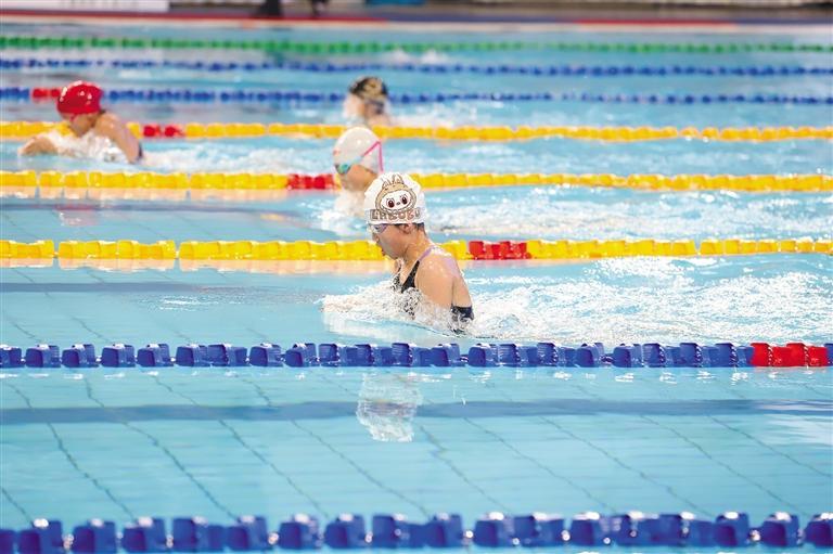 另一边,学生家长孙虔正拿着毛巾和水杯在终点线旁等候,他笑着对记者说:“我今天是专程陪孩子来参赛的。孩子从7岁半开始学游泳,这两年变化特别大,身体强壮了,个子也长得快。孩子一周要练四五次,虽辛苦,但只要他喜欢,我就全力支持。”