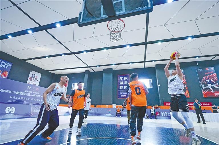 9月29日,陕西省第三届“延长石油杯”三人篮球联赛(社区组)揭幕战精彩上演。图为比赛现场。