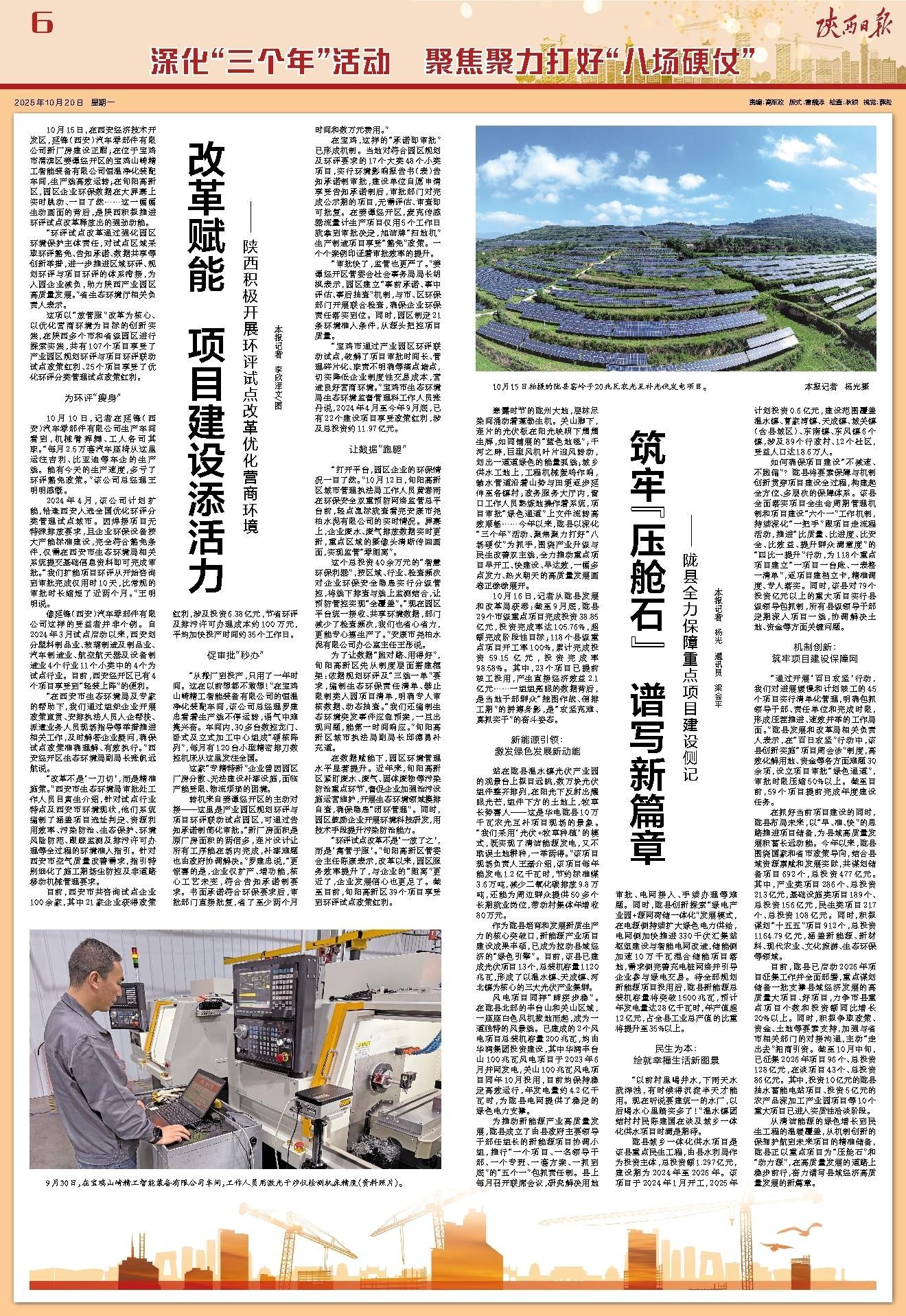 从清洁能源的绿色增长到民生工程的温暖覆盖,从机制创新的保驾护航到未来项目的精准储备,陇县正以重点项目为“压舱石”和“动力源”,在高质量发展的道路上稳步前行,奋力谱写县域经济高质量发展的新篇章。