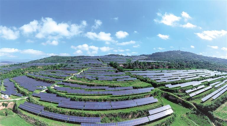10月15日拍摄的陇县窑岭子20兆瓦农光互补光伏发电项目。 本报记者 杨光摄