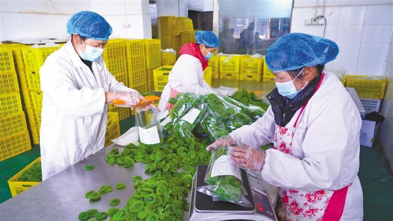 10月27日,宝鸡太白山美源果品有限公司车间里,工人在包装准备出口的猕猴桃果脯。 本报通讯员 张祺摄