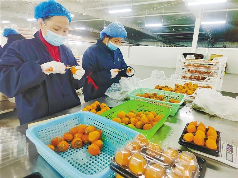10月27日,陕西富平大方天玺绿色农业发展有限公司生产车间里,工人将烘烤后的柿子进行包装。 本报通讯员 刘丹摄