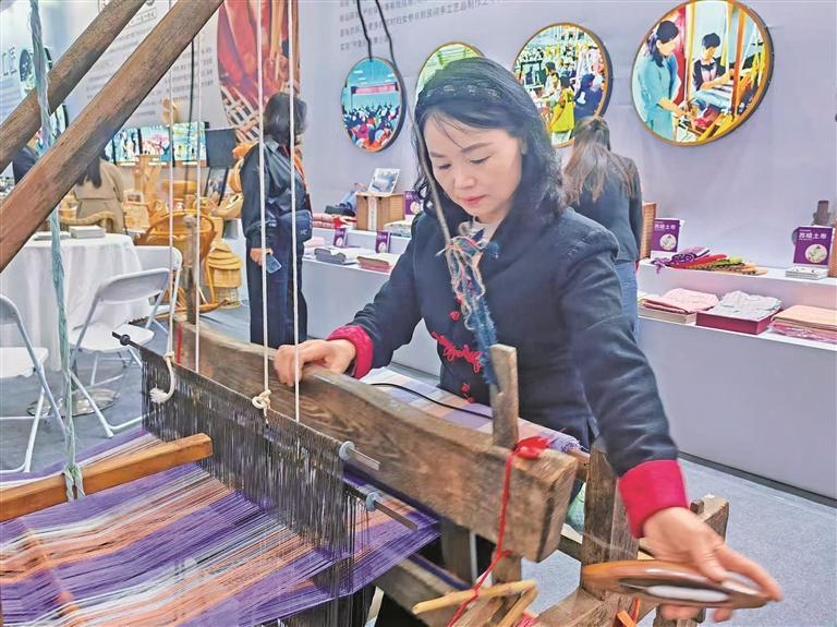 “武功织女”劳务品牌从业人员现场展示技艺。