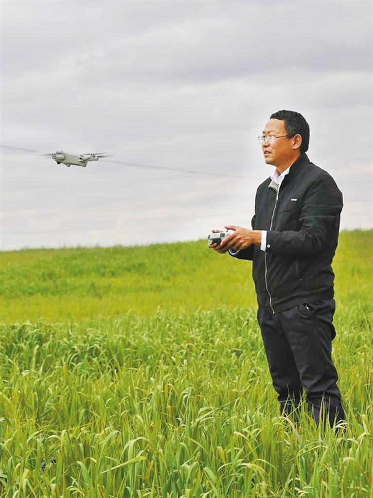 十一月四日,陈治武用无人机拍摄靖边县东坑镇伊当湾村的麦田。