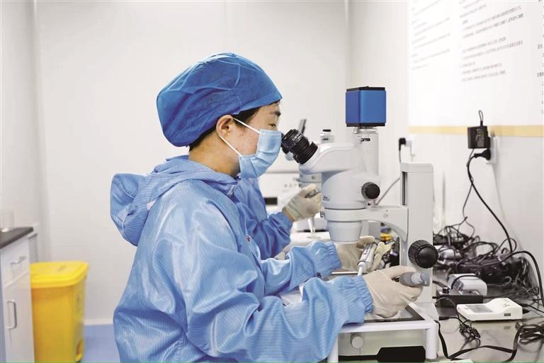 科技赋能是榆阳区牛产业高质量发展的“关键密码”。在陕西金禾来牧业有限公司养殖基地,2400头肉牛分栏科学饲养,基地建成国内首家集肉牛胚胎与冻精加工于一体的实验室,具备卵母细胞采集、体外受精、胚胎培养等关键技术。“我们构建了活体采卵—体外受精—胚胎移植新技术体系,每次可获得3—5枚A级胚胎,移植成功率稳定在50%以上。截至目前,已为各类经营主体实施母牛人工授精1000头次,有效提升了区域肉牛遗传品质。”该公司负责人朱小艳介绍。