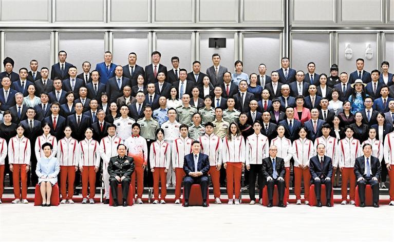 11月9日下午,中共中央总书记、国家主席、中央军委主席习近平在广州亲切接见全国群众体育先进单位、先进个人代表和全国体育系统先进集体、先进个人代表,并同大家合影留念。 新华社记者 申宏摄