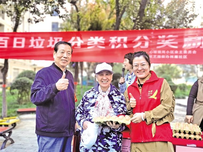碑林区文艺路街道林雁社区心晴雅苑小区的垃圾分类积分奖励活动,吸引居民参与(资料照片)。 受访者供图